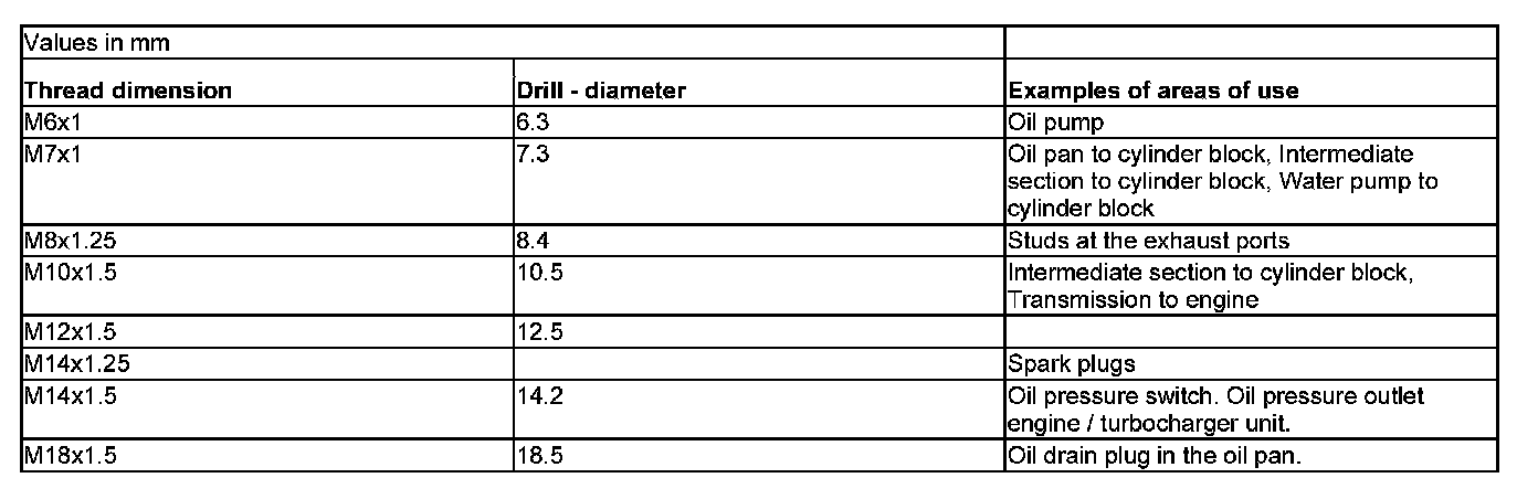 Use combination tap 998 5823-5 and thread repair inserts for spark plug thread M14x1,25.