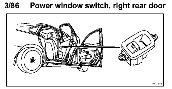 3/86 Power Window Switch, Right Rear Door: