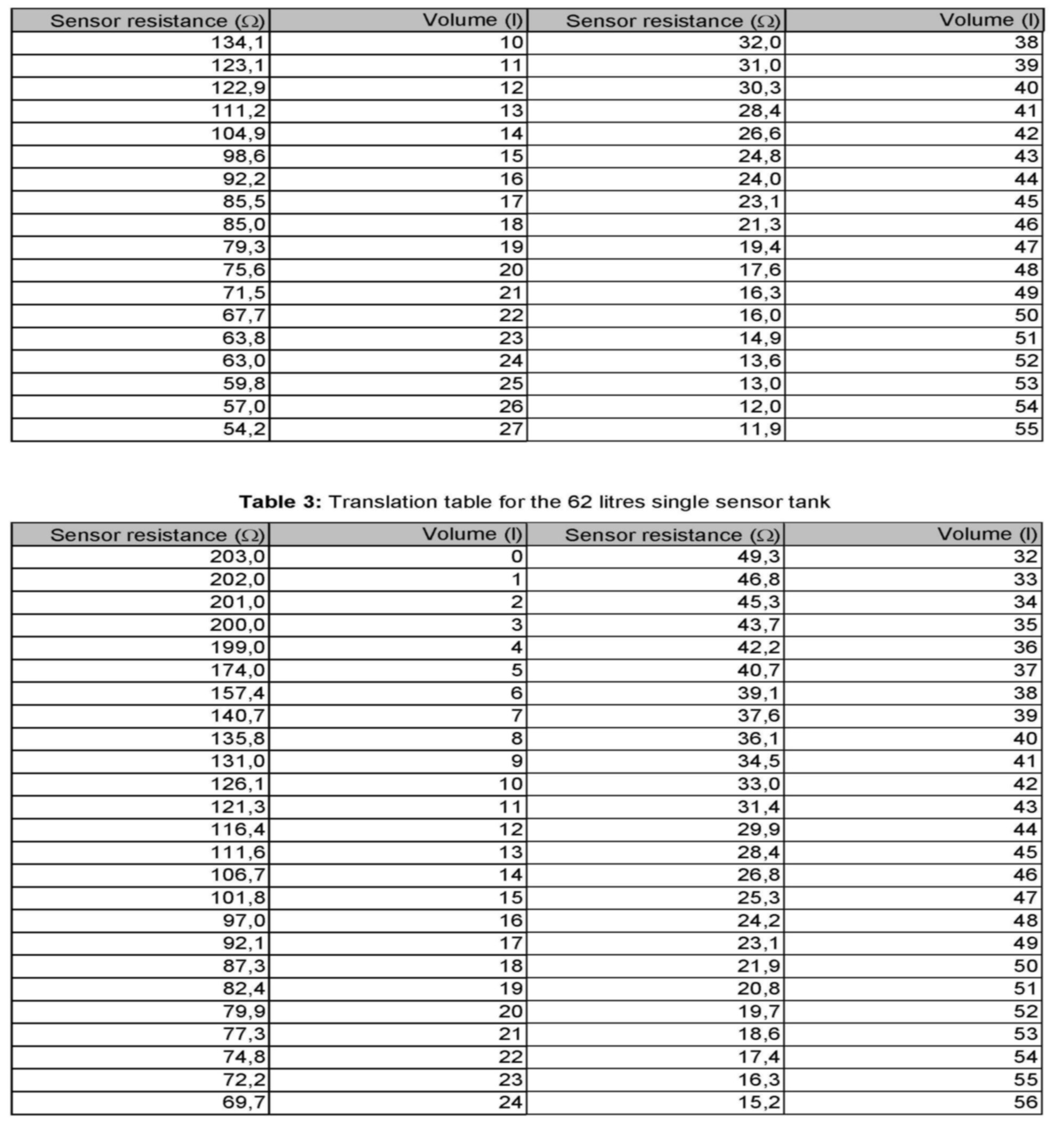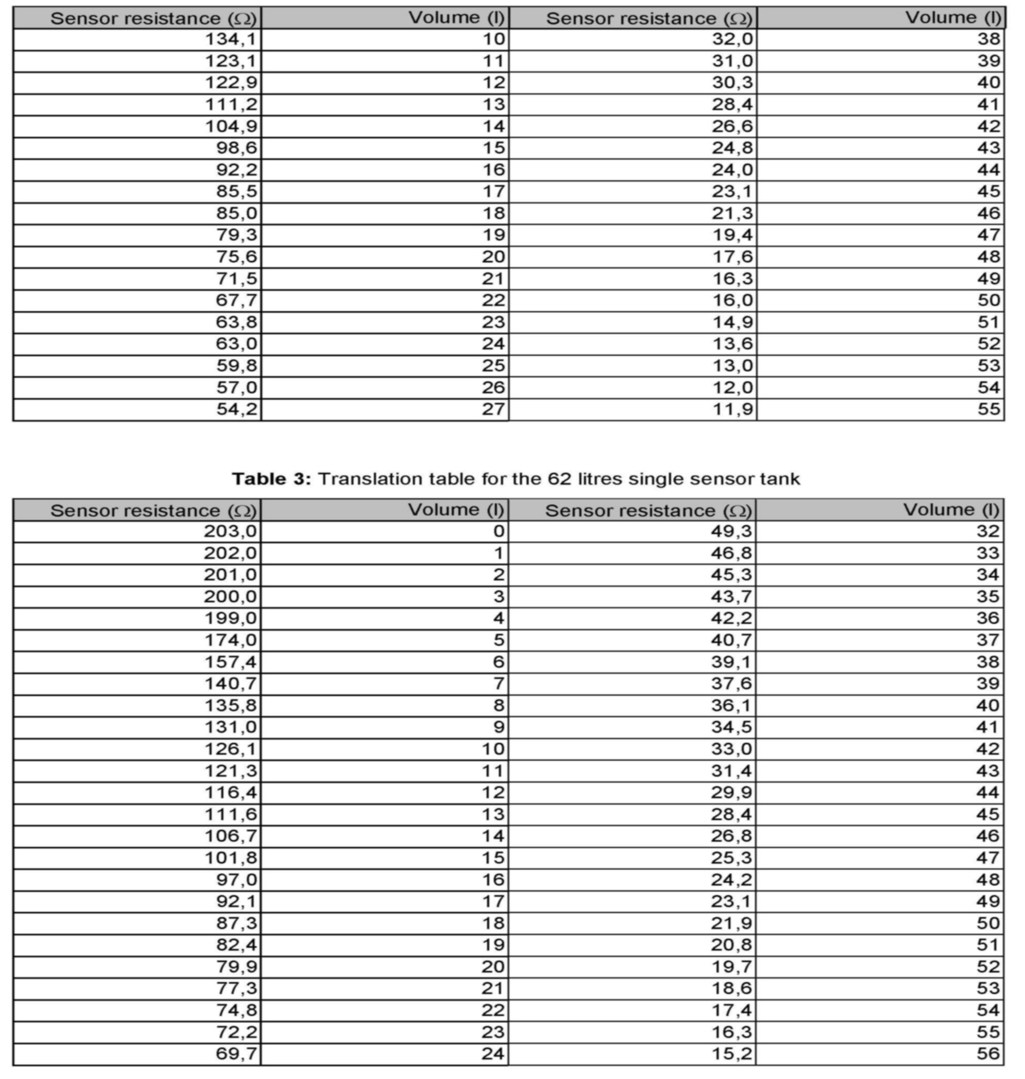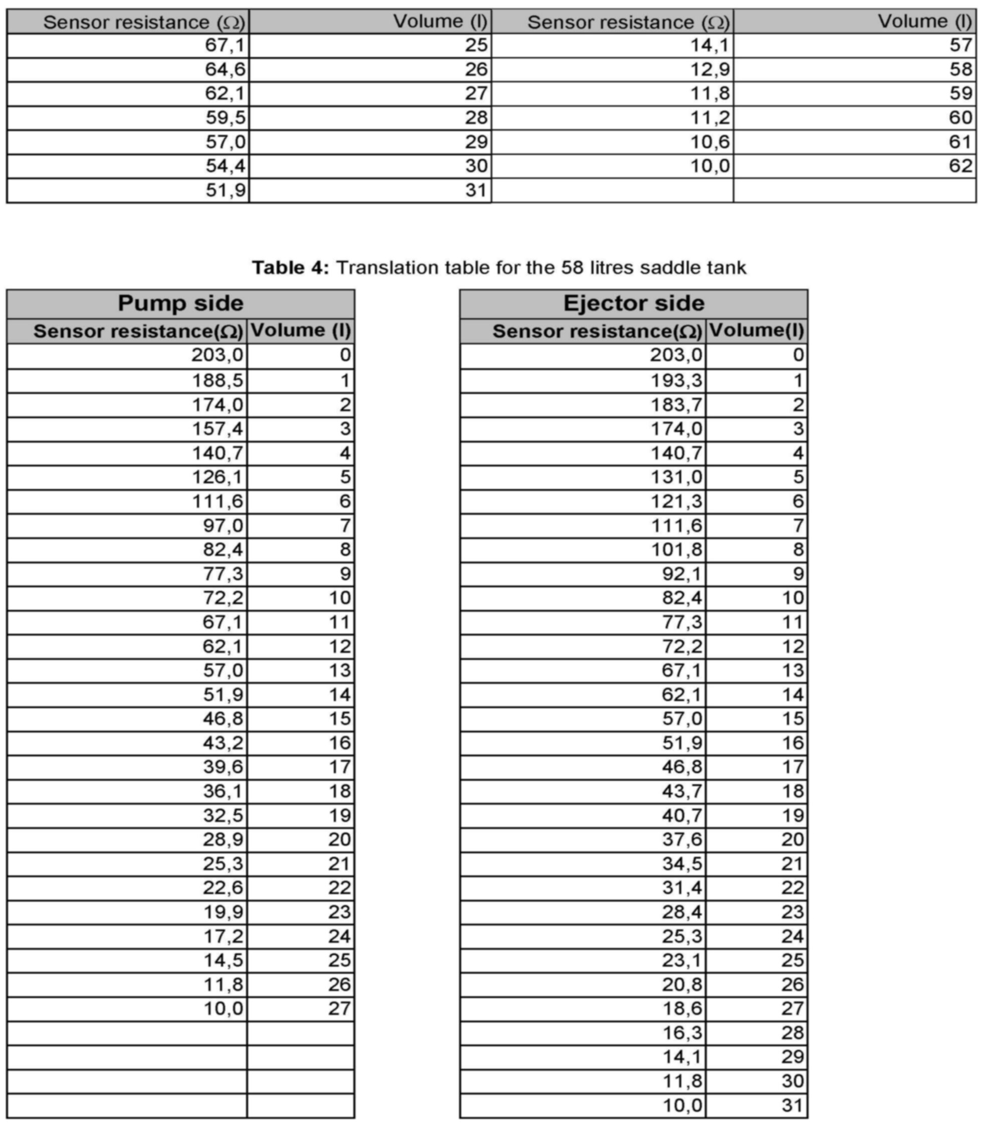 Fuel Level Translation table P1