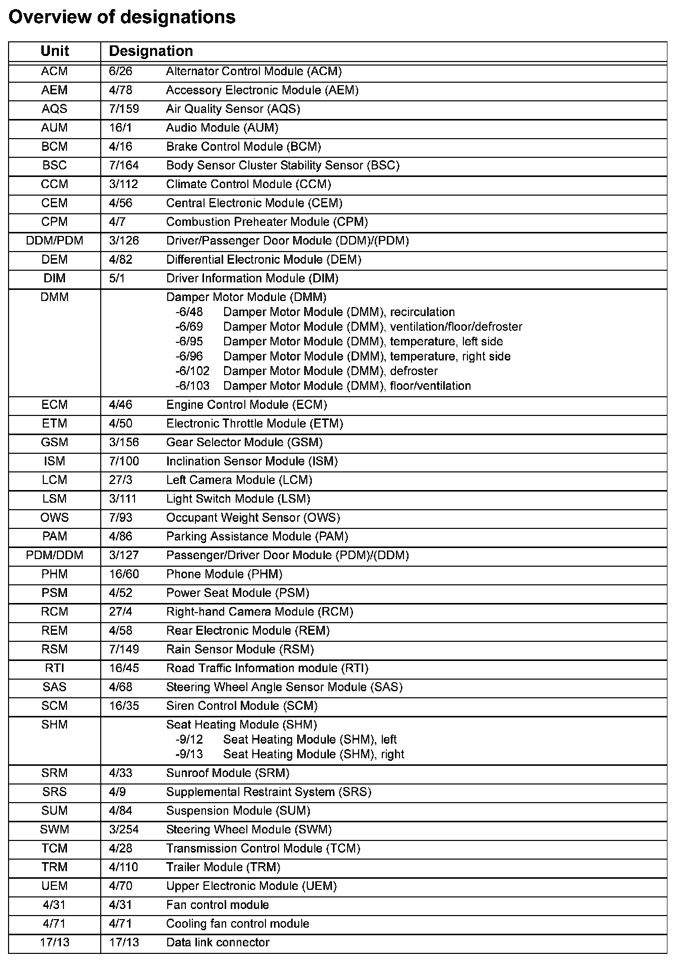 Overview Of Designations: