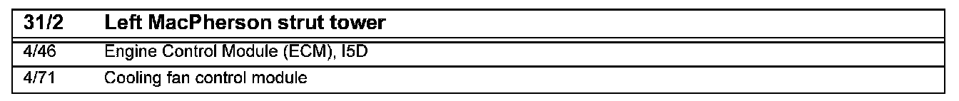 31/2 Ground Connection, Left MacPherson Strut Tower: