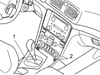 - Detach the panel (1) with the gear selector lever boot using a weatherstrip tool.
