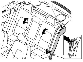 - Remove the seat cushion from the left rear seat (1) by lifting the front edge of the cushion and pulling forward.