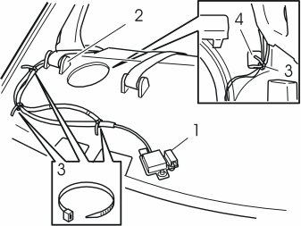 - Secure the wiring at the existing cable harness (7). Use the tie strap from the kit.