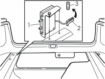 - Install the new Global Positioning System (GPS) antenna (1) in the guide hole. Press the clip into the hole in the centre of the rear edge of the parcel shelf as illustrated.