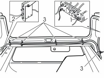 - Route the wiring along the inside of the cable duct (2) and the insulation panel by the wheel arch in the cargo compartment.