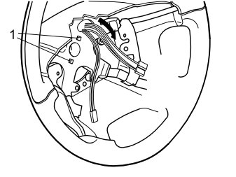 - Carefully install the new steering wheel by holding it straight and aligning the locating pins (1) on the contact reel.