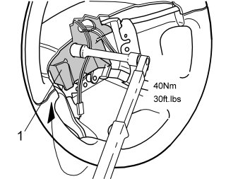 - Reinstall the screw in the steering wheel (see (3)). Tighten to 40 Nm (30 lbf.ft.).
