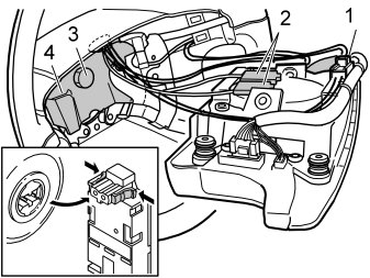 - Plug in the connector (1) to the connector on the steering wheel module as illustrated.
