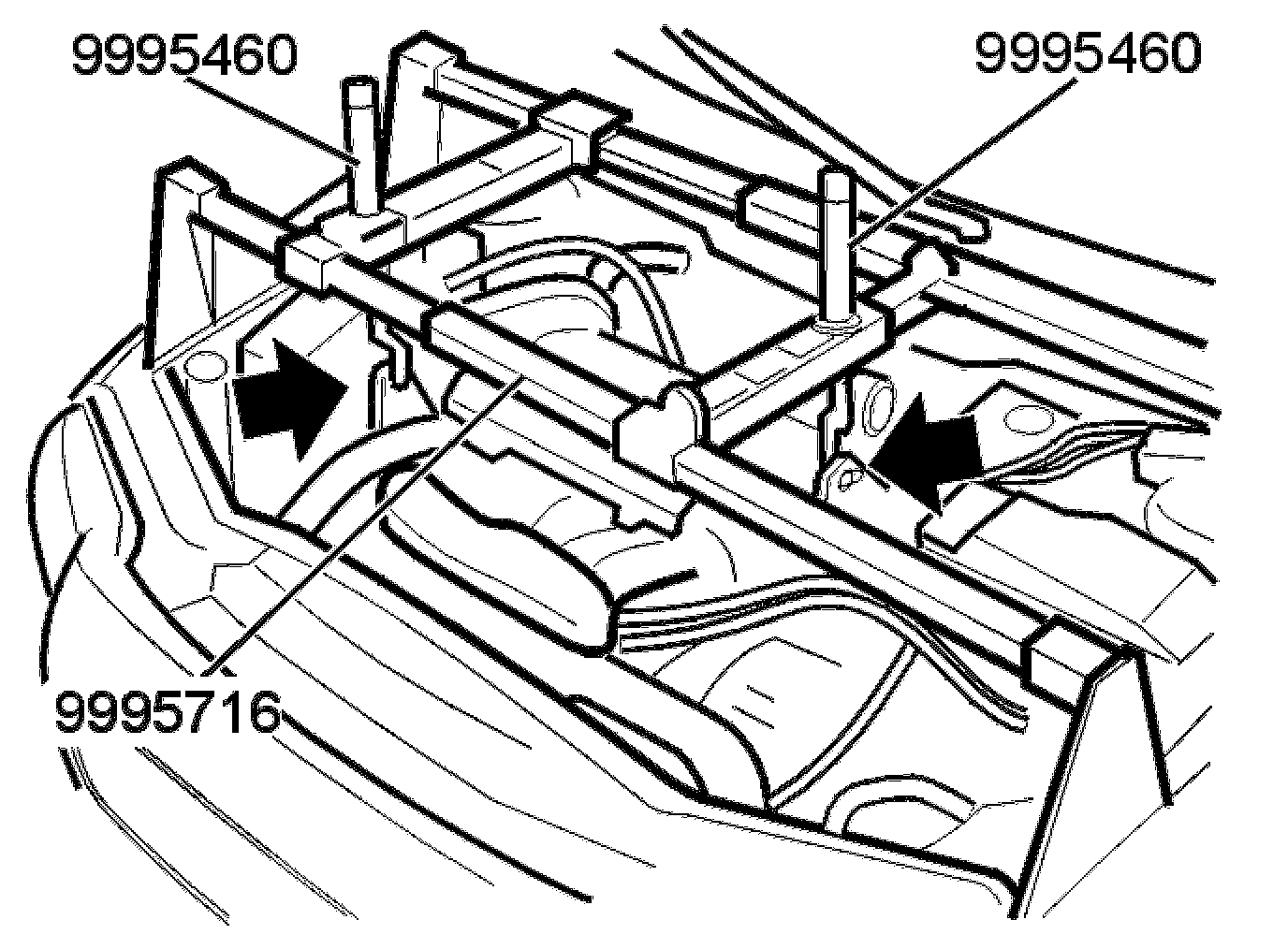 - Install lifting tools 999 5716 and lifting hooks 999 5460.