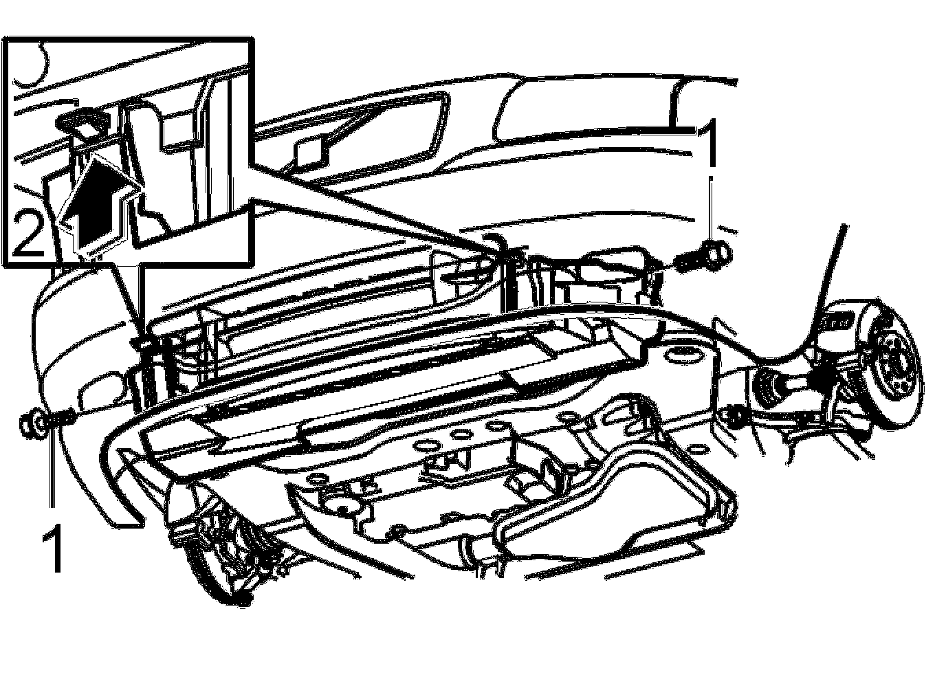 - Remove the fuel line for the engine block heater (if applicable) on the sub-frame from the snap fasteners.