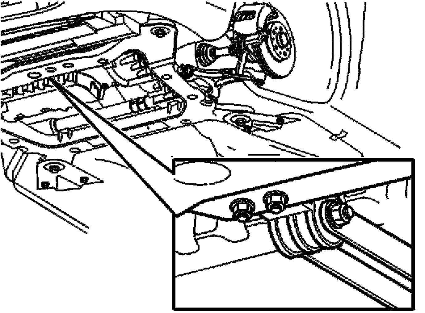 - Lift up the sub-frame slightly, approximately 50 mm from the car body.