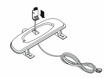 - Fit the remote control holder to the bracket. Use the existing plastic screws fitted in the bracket.