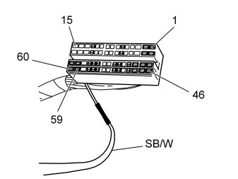 - Connect the black/white (SB/W) solid core wire to position 59 in the connector. The positions are marked with small figures on end faces of the connector.