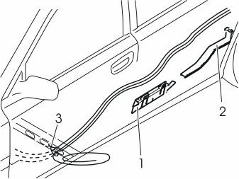 - Guide the connector from the screen down through the hole to the centre loudspeaker, along the left-hand inside of the centre console, along the air ducts under the floor carpet and out at the sill to the left-hand front door.