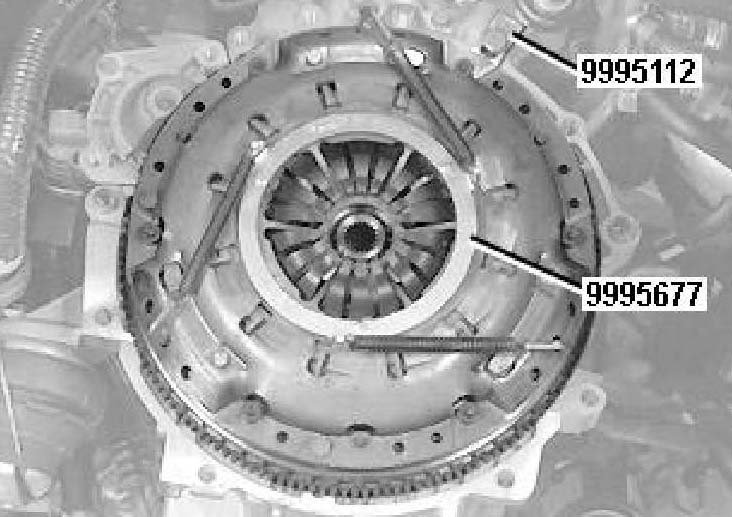 Check that the clutch automatic adjustment is secured with counterhold 999 5677.