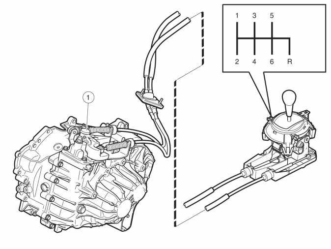 The shift lever assembly houses a solenoid that serves as an electronically controlled reverse inhibitor. If vehicle speed exceeds 25 km/h (15.5 mph), the solenoid is activated and it is not possible to engage reverse gear. When speed drops below 15 km/h (9 mph), the solenoid releases and reverse gear can be engaged.