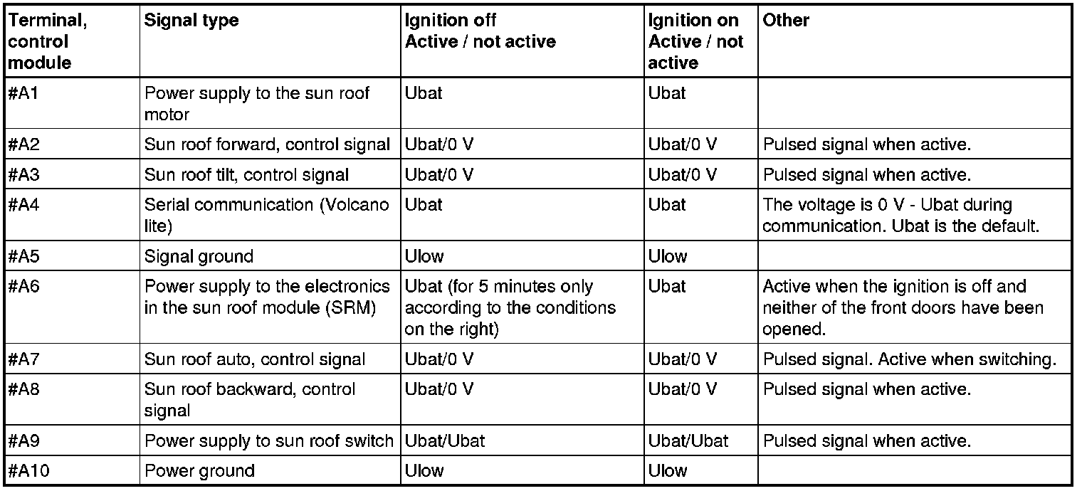The following values are measured between the relevant terminal in column 1 and terminal #A5 (signal ground) unless otherwise stated.