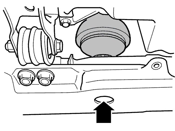 Install the front engine pad screw. Tighten to 50 Nm.