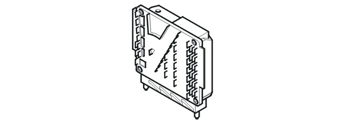 The engine control module (ECM) is positioned in a box in the engine compartment. The transmission control module (TCM) is also in this box in vehicles with automatic transmissions.