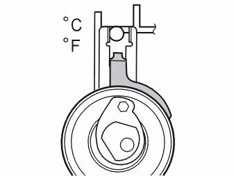 At a higher temperature, for example with a warm engine or a higher ambient temperature, the needle is further to the right.