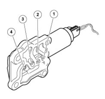 Blow compressed air into the oil feed hole (2). Air should come out through the A port (3). If the piston jams or the solenoid does not work, the direction of flow will not change. If the duct seems to be blocked, go to the cleaning step.