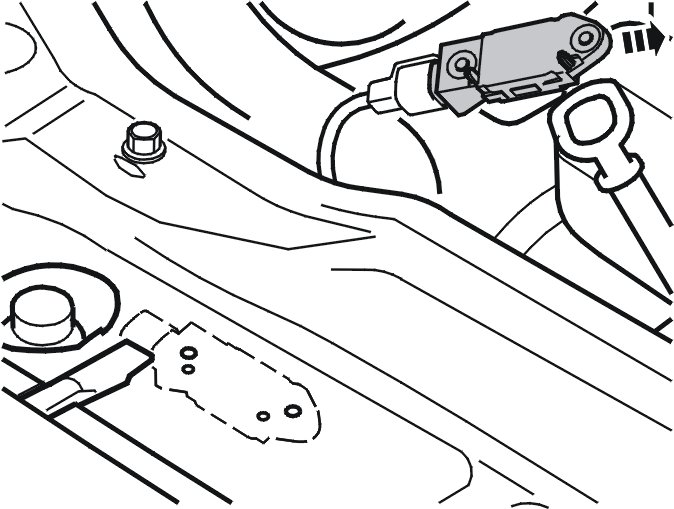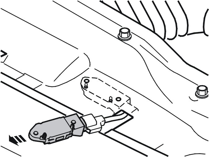 Note! Ensure that the collision sensor locating pins are aligned correctly against the cross member.