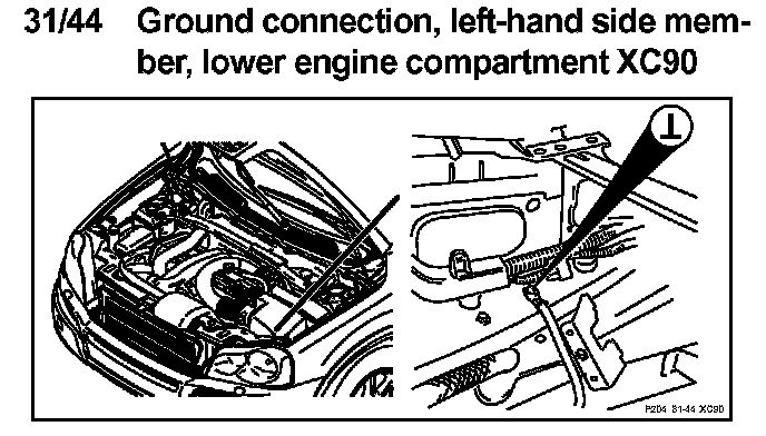 31/44 Ground Connection, Left-hand Side Member, Lower Engine Compartment: