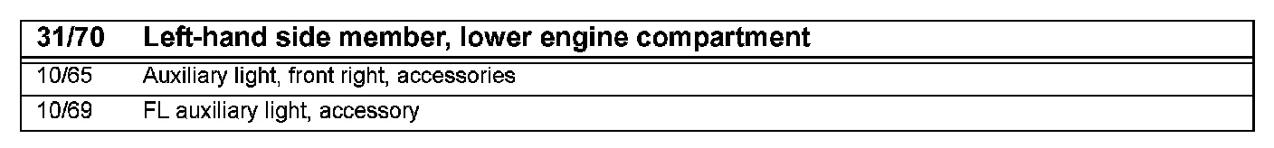 31/70 Ground Connection, Left-hand Side Member, Lower Engine Compartment: