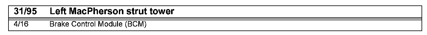 31/95 Ground Connection, Left MacPherson Strut Tower: