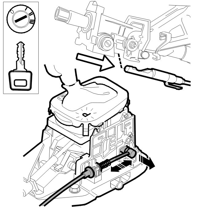 An interlock and security feature (ignition switch interlock) is mechanically connected to the ignition switch by a cable. The ignition switch interlock is controlled by the position of the lock cylinder in the ignition switch and by the position of the gear selector. This means that the gear selector must be in the P-position for the ignition key to be removed from the ignition switch. The ignition key must be turned to position I or II before the lever can be moved from the P-position. The ignition switch interlock is used only in combination with shift-lock.