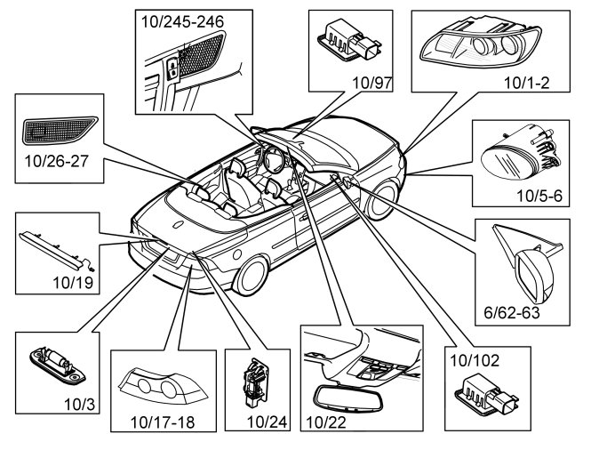 For further information about the interior lighting, see Design and Function, central electronic module (CEM).