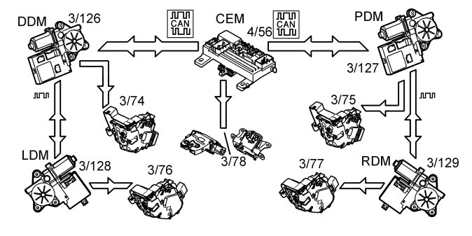 The signals are used to generate error messages and diagnostic trouble codes (DTCs) if a door is not properly closed when the vehicle is driven or if locking or unlocking of one or more doors has failed one or more times.