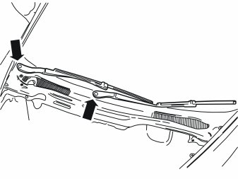 - Detach the panel over the wiper motor on the right side and pull it up from the right wiper shaft.