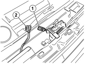 - Plug the bonnet catch's connector (1) into the pre-routed connector (2).