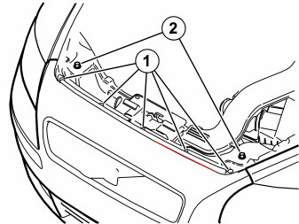 - Remove the five clips (1) by pressing in their centre and pull.