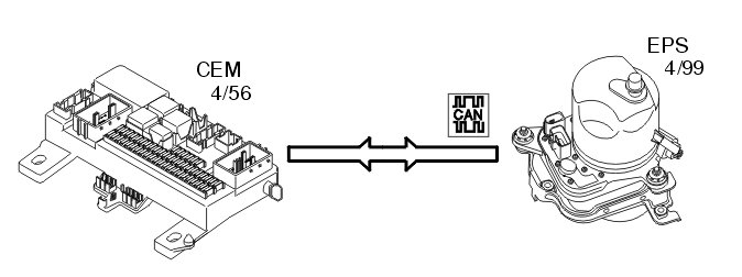 If a fault is registered (certain diagnostic trouble codes (DTCs) only), the electrical power steering module (EPS) (4/99) will inform the central electronic module (CEM) (4/56) that there is a fault in the power steering system via the controller area network (CAN). The central electronic module (CEM) then transmits a request via the controller area network (CAN) to the driver information module (DIM) (5/1) to light the information lamp and to activate a text message in the display. The text message informs the driver that there is a fault in the power steering system. When the fault has been remedied, a request is transmitted in the same way to switch off the information lamp and deactivate the text message.