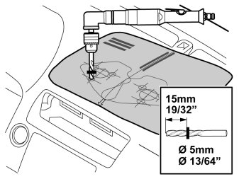 - Drill for the connection of the connector. Drill through all layers of the dashboard. Use a 25 mm (1")drill stop.