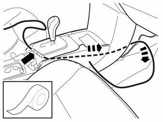 - Attach pieces of butyl tape on the right-hand side of the tunnel console to secure the cable harness.