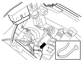 - Position the fuse holder on the cable harnesses by the gear shift carrier's right-hand rear corner and secure using a cable from the kit.