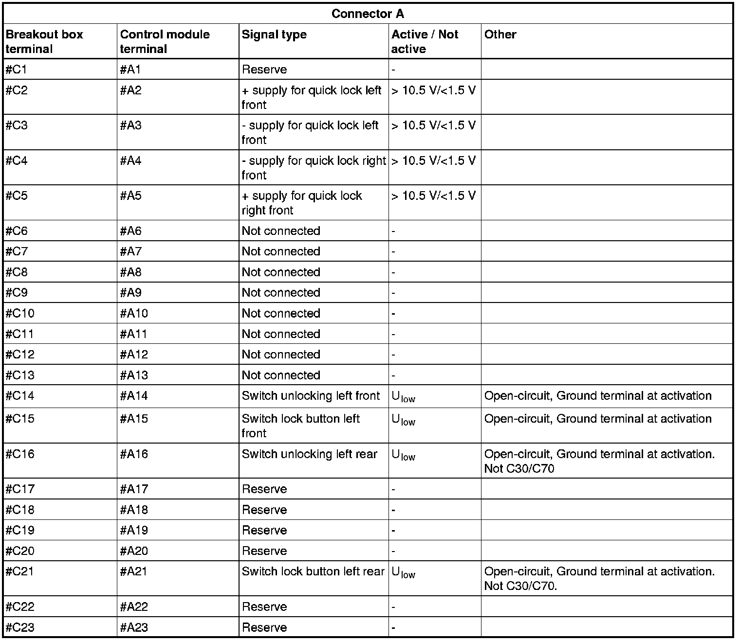 All values given below are between the terminals stated in column 1 and terminal #B5 (power ground). This applies unless otherwise indicated in brackets.