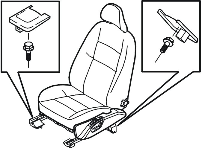 - the panels over the screws for the seat rails