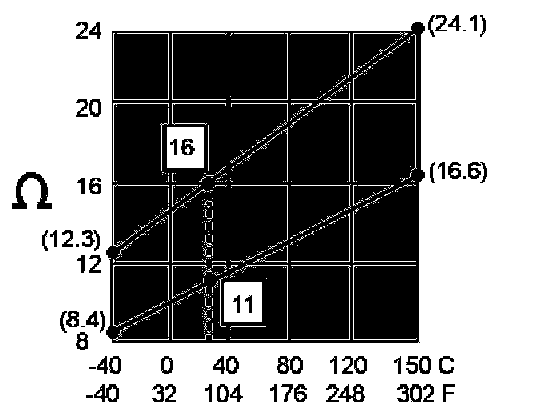 For other values, see diagram. When taking readings at temperatures other than +20 �C, a control reading must be taken at +20 �C. This is done to check whether the resistance is correct or not.