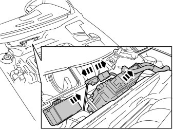 - Remove the connector for the headlights' control module, located in the bracket's lower edge on the right side, and remove the bracket with control module.