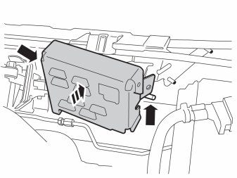 - Loosen the relay box from its holder to access the siren's attachment bracket in front of the air inlet to the climate unit.