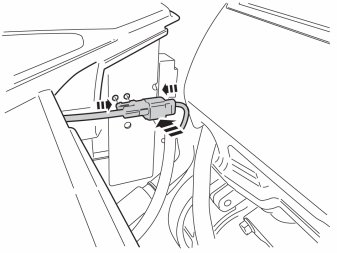 - Route the lead from the hood lock and plug in the connector to the pre-wired black, 2-pin connector on the coarse cable harness behind the headlight's placement.