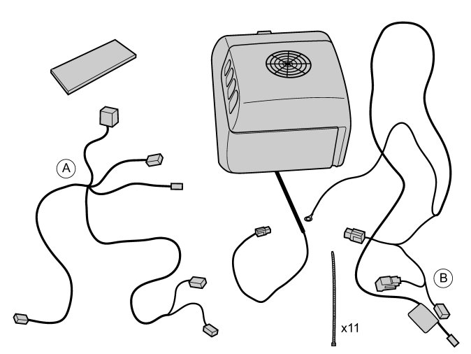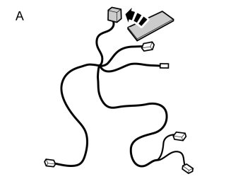 - Take cable harness (A) and foam tape pieces from the kit.