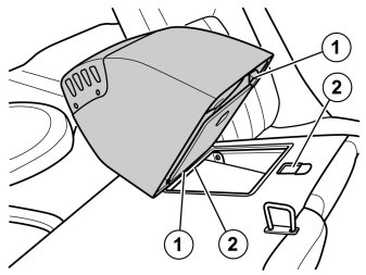 - Take the cooler/hotbox from the kit. Place it over the hole in the backrest so that the catches (1) in the box engage in the corresponding holder (2) in the backrest.