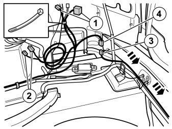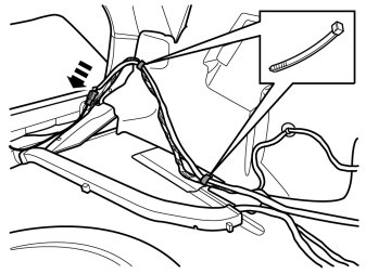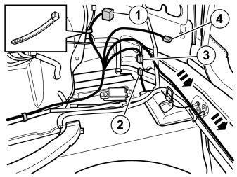 - Clamp the pre-routed cable harness at the existing cable harness with four cable ties from the kit.