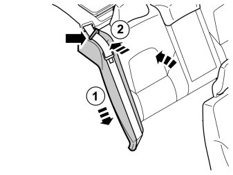 - Remove the seat belt from the guide (1) on the right-hand side cushion.
